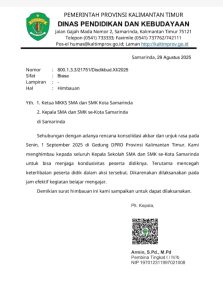 Kalimantan Timur -Dinas Pendidikan dan Kebudayaan (Disdikbud) Provinsi Kalimantan Timur mengeluarkan surat edaran resmi yang berisi imbauan kepada seluruh kepala…