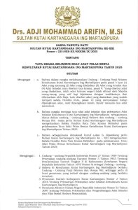 Tenggarong –Sultan Kutai Kartanegara Ing Martadipura XXI, Drs. Adji Mohammad Arifin, M.Si, resmi menetapkan tata krama pelaksanaan Belimbur dalam rangkaian…